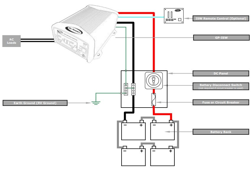 Figura 3. Diagramma schematico completo del cablaggio e della messa a terra lato CC dell'inverter (PE/terra)